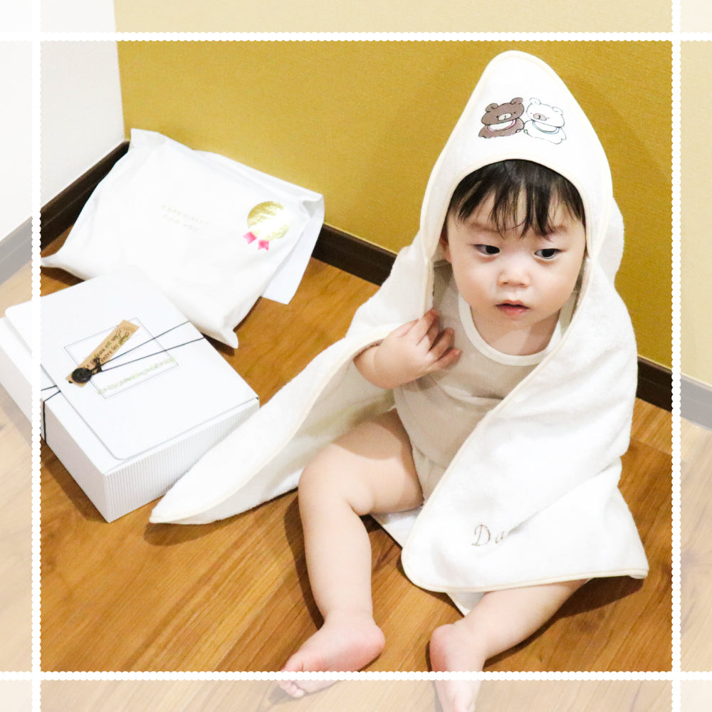 オーガニックコットン100%泉州タオルのフード付きタオルおくるみ。