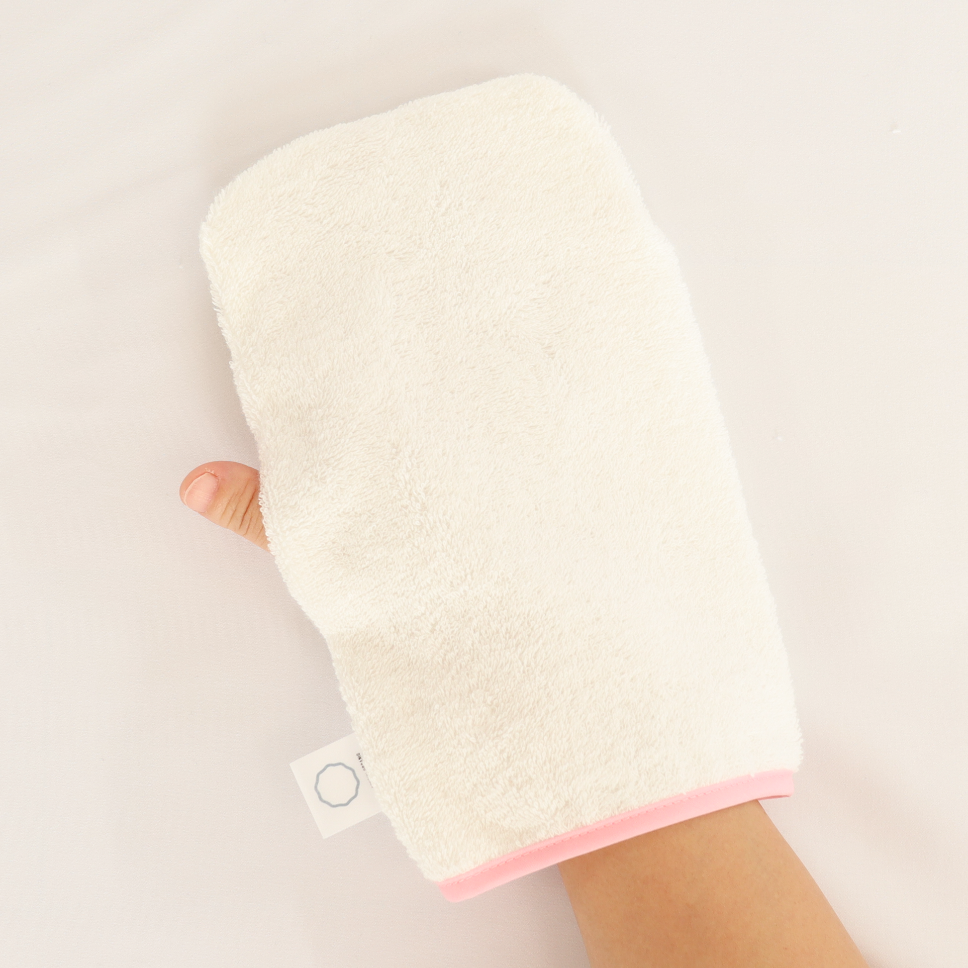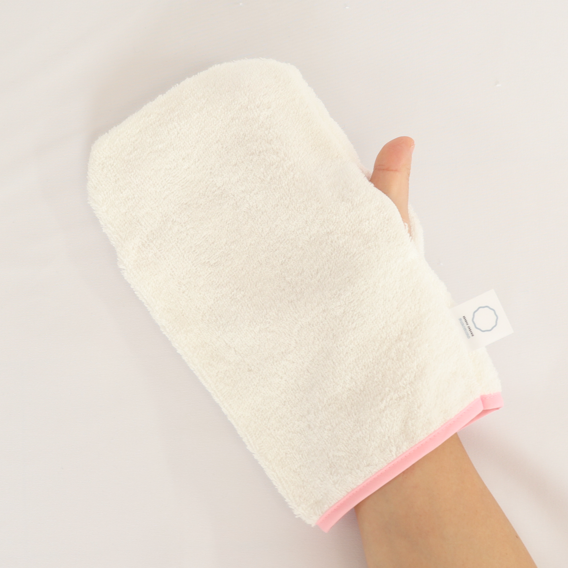 ◯ガーゼ(タグのくまの服色ピンク)+スタイ(ピンク)+ミトン(ピンク)