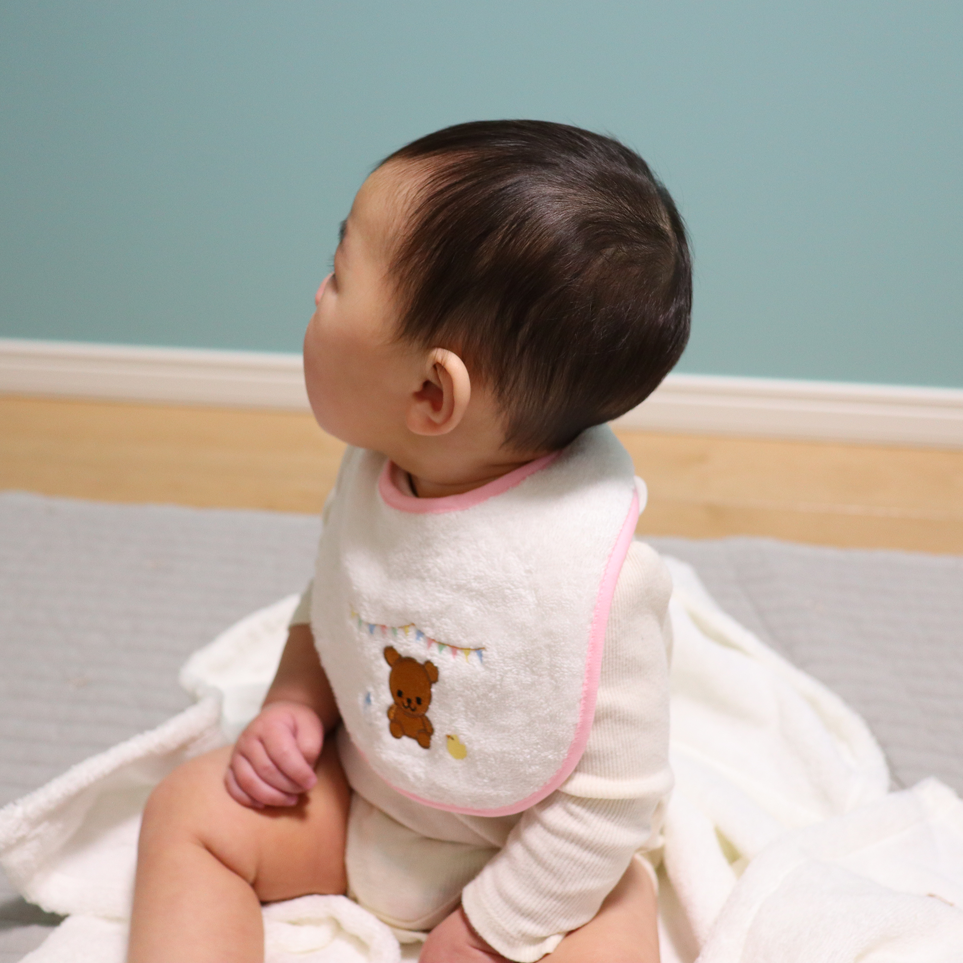 ◯ガーゼ(タグのくまの服色ピンク)+スタイ(ピンク)