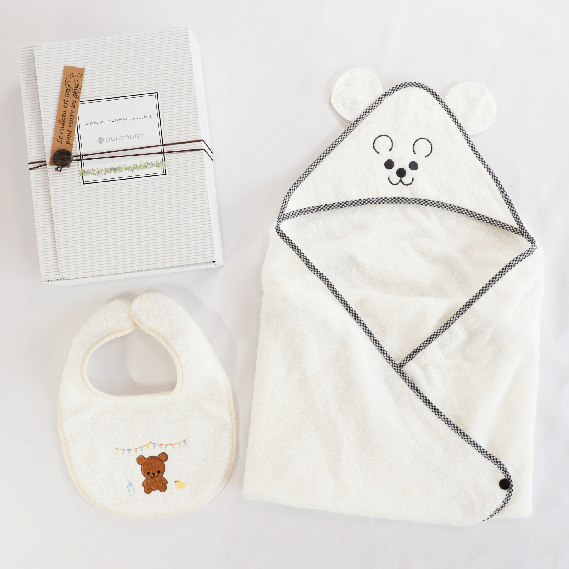 ◯フード付きタオルおくるみ+スタイ(生成り)