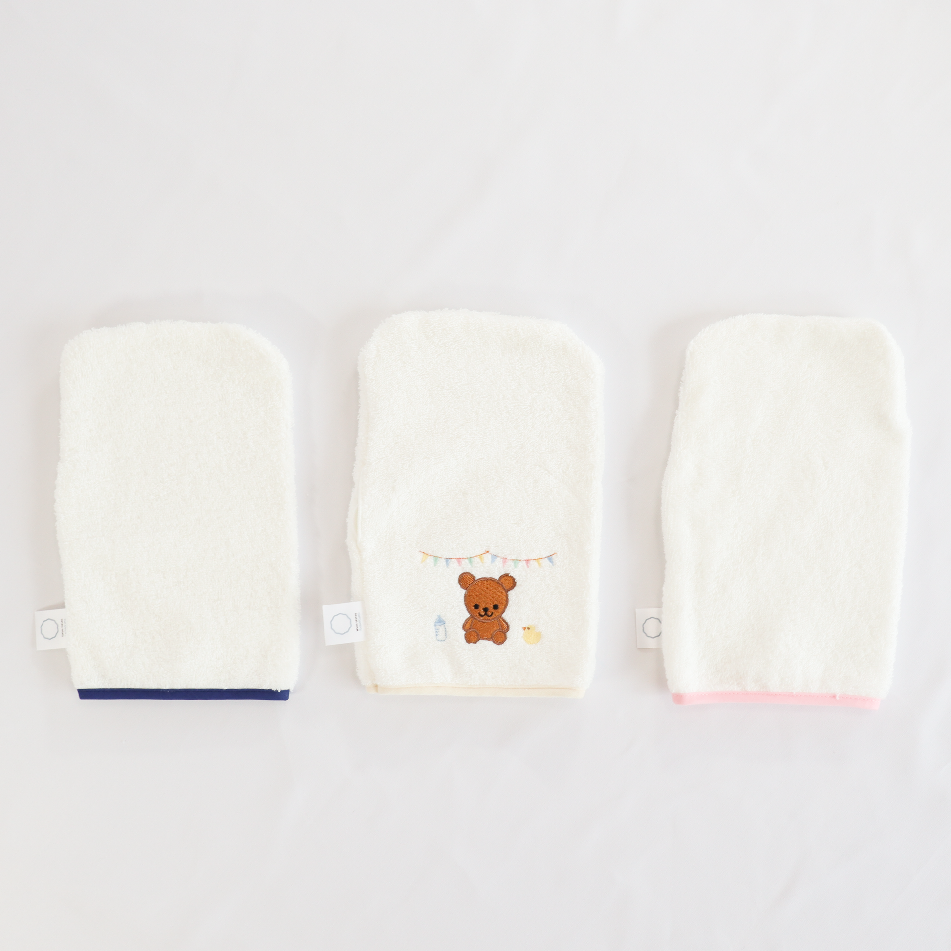 ◯バスポンチョ+スタイ(生成り)+ミトン(くま)